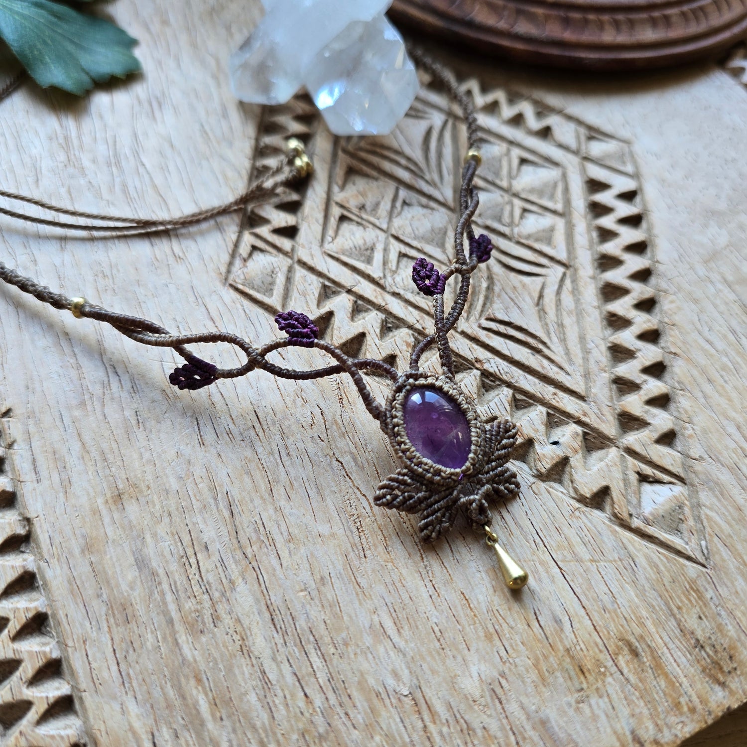 Collier feuilles améthyste