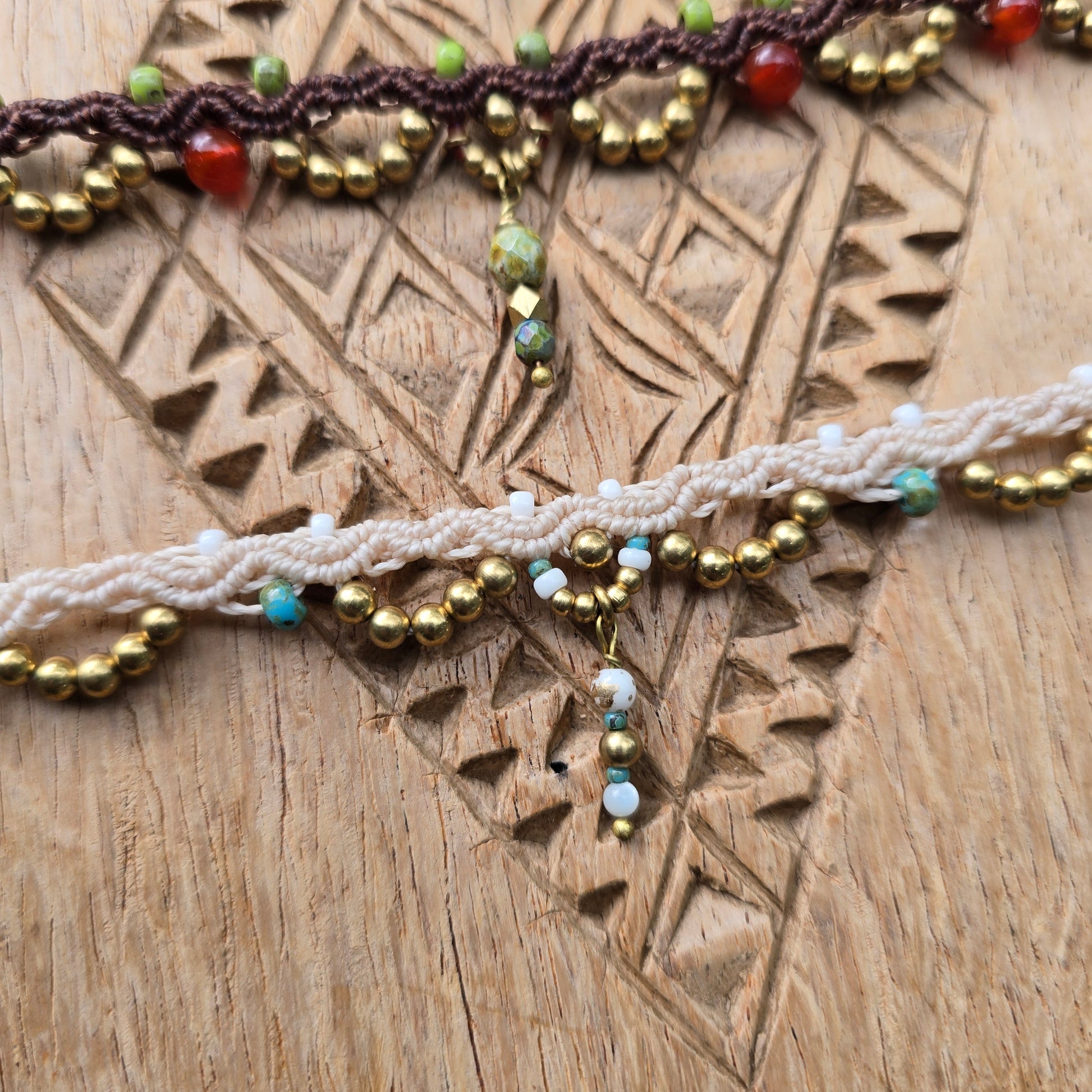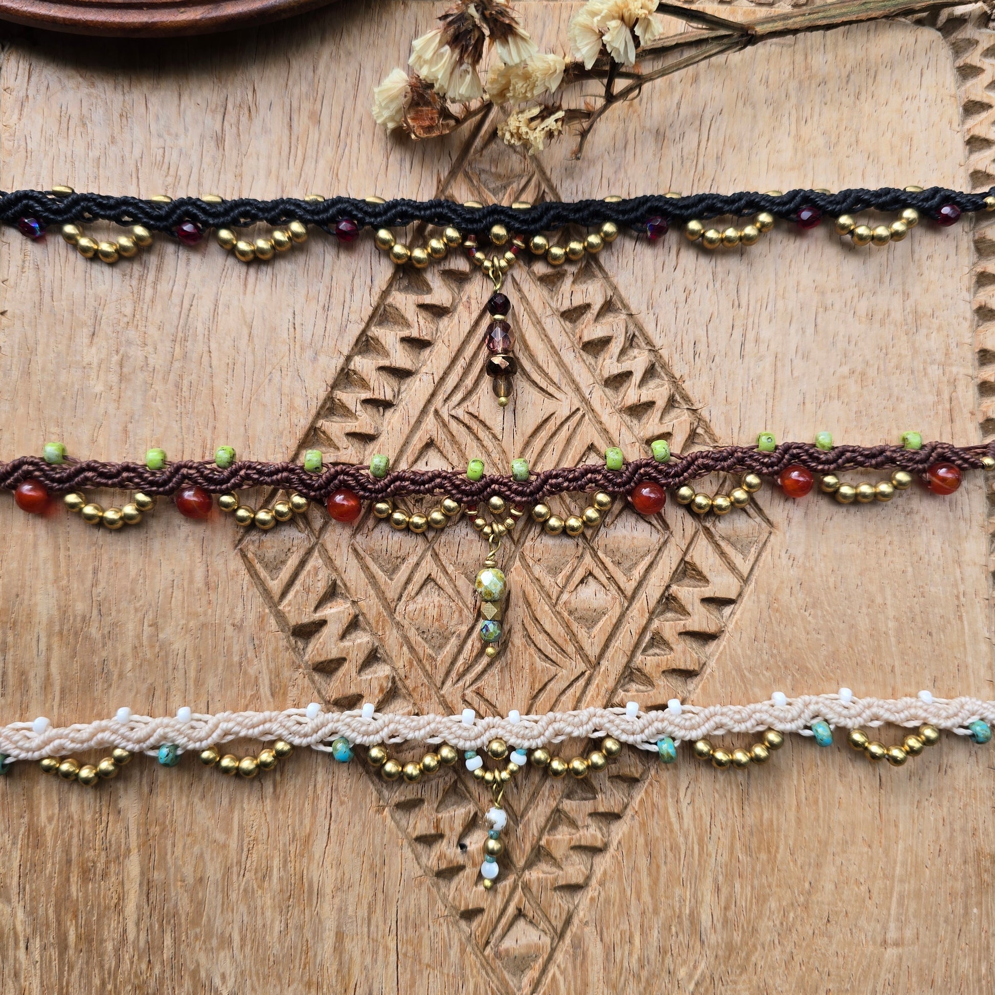 - Marron, perles en pierre naturelle de cornaline, perles en laiton , perles rocaille, perles en verre Tchèque.