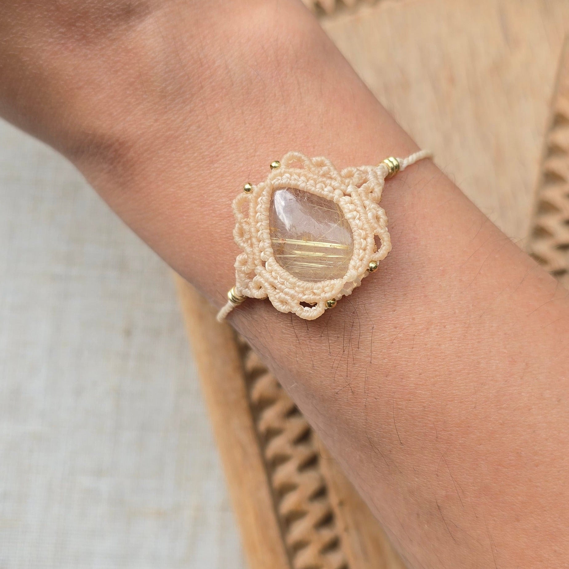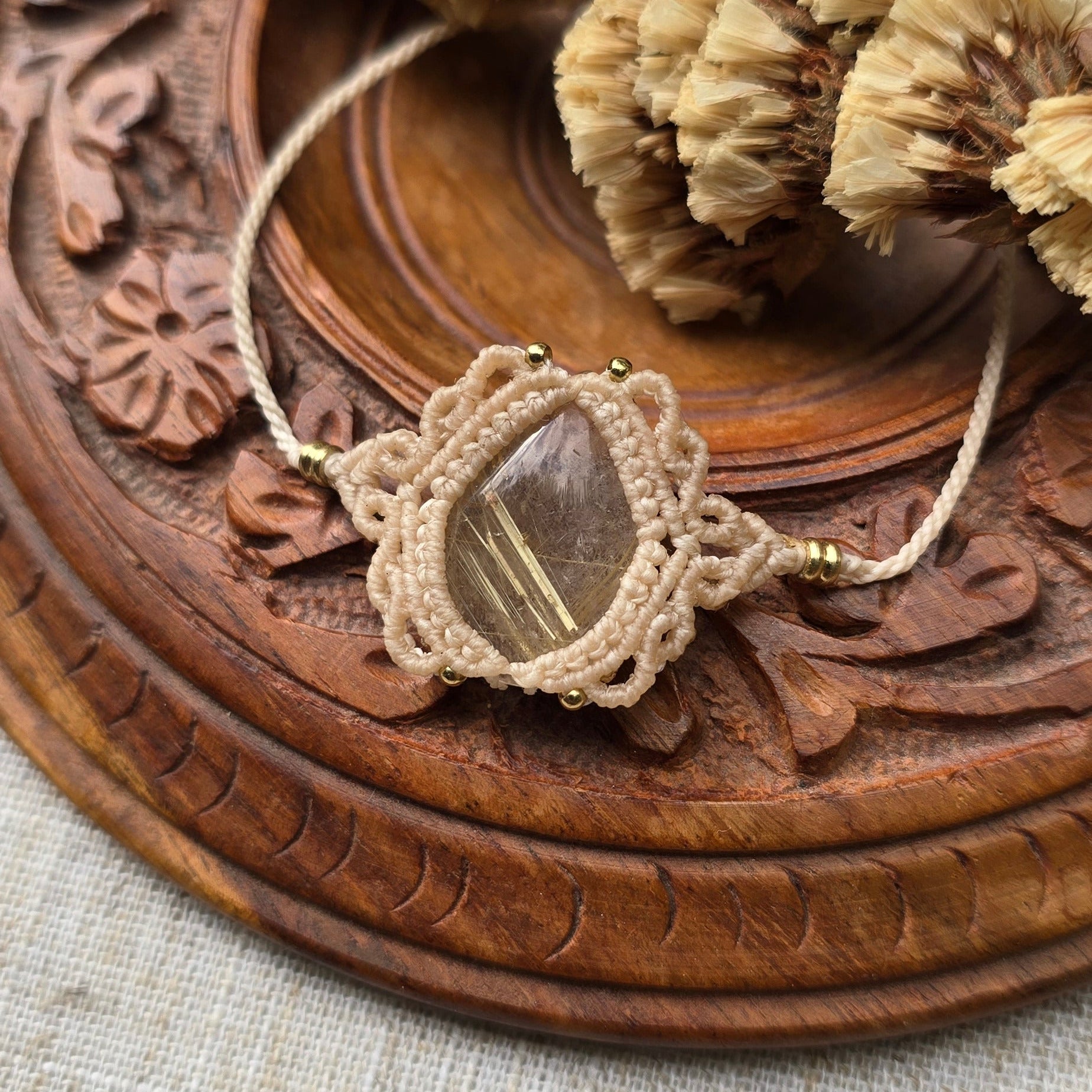 Bracelet en macramé, pierre naturelle de quartz rutile.